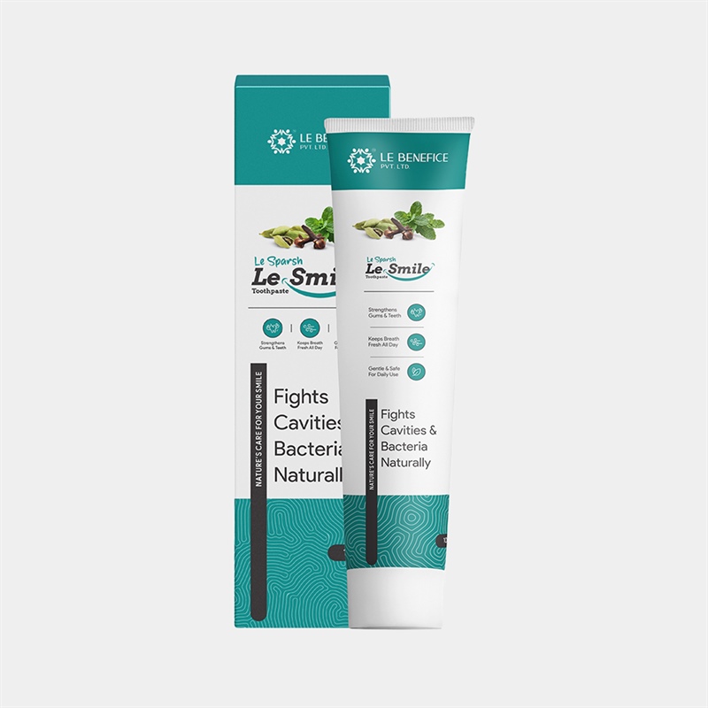 Le Smile Toothpaste is enriched with the goodness of Aloe Vera, Neem, Clove, Cardamom, Pudina, and other Ayurvedic herbs that provide complete oral care. It helps fight bacteria, strengthen gums, prevent plaque, and ensure lasting freshness. The unique herbal blend not only maintains oral hygiene but also soothes gum discomfort and keeps your smile naturally bright.