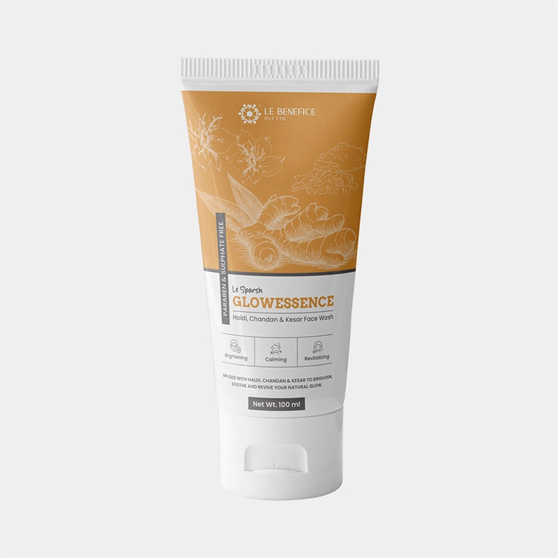 Le Sparsh GlowEssence Face Cleanser with Haldi, Chandan, and Kesar is an Ayurvedic blend designed to brighten, purify, and rejuvenate your skin. Infused with natural ingredients like Papaya, Aloe Vera, Honey, and Rose, it gently exfoliates dead skin, reduces pigmentation, and promotes a healthy glow. This soothing formula calms inflammation, hydrates deeply, and leaves your skin soft, clear, and radiant with daily use.